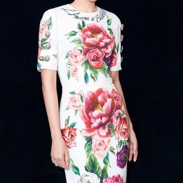 彩り鮮やかな花柄が魅力的な、パーティーにもおすすめのドレスです。大胆な華やかさを演出してくれます。着るだけで女性らしいラインを作ってくれます♪