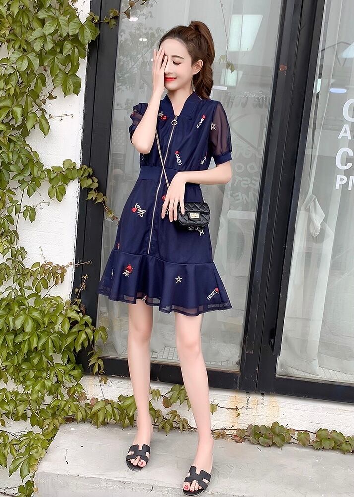 涼しげなシースルーとサラサラした生地感が春夏にぴったりなワンピース♡さりげない文字刺繍や胸元からのチャックが遊び心満載♪ マーメイドフリルになっているスカートで可愛さもプラス!とってもガーリーなアイテムです♪