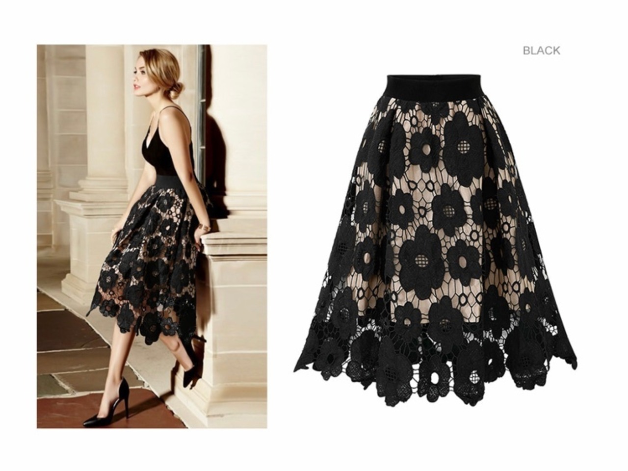 ヴィンテージ花柄レーススカート(ブラック)◉
