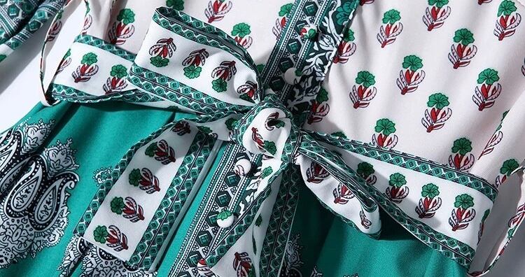 ヴィンテージプリント*ロングランタンスリーブワンピース◉