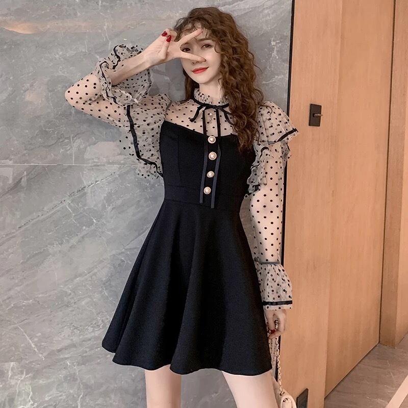 ドット柄♡フレアスリーブミニワンピース