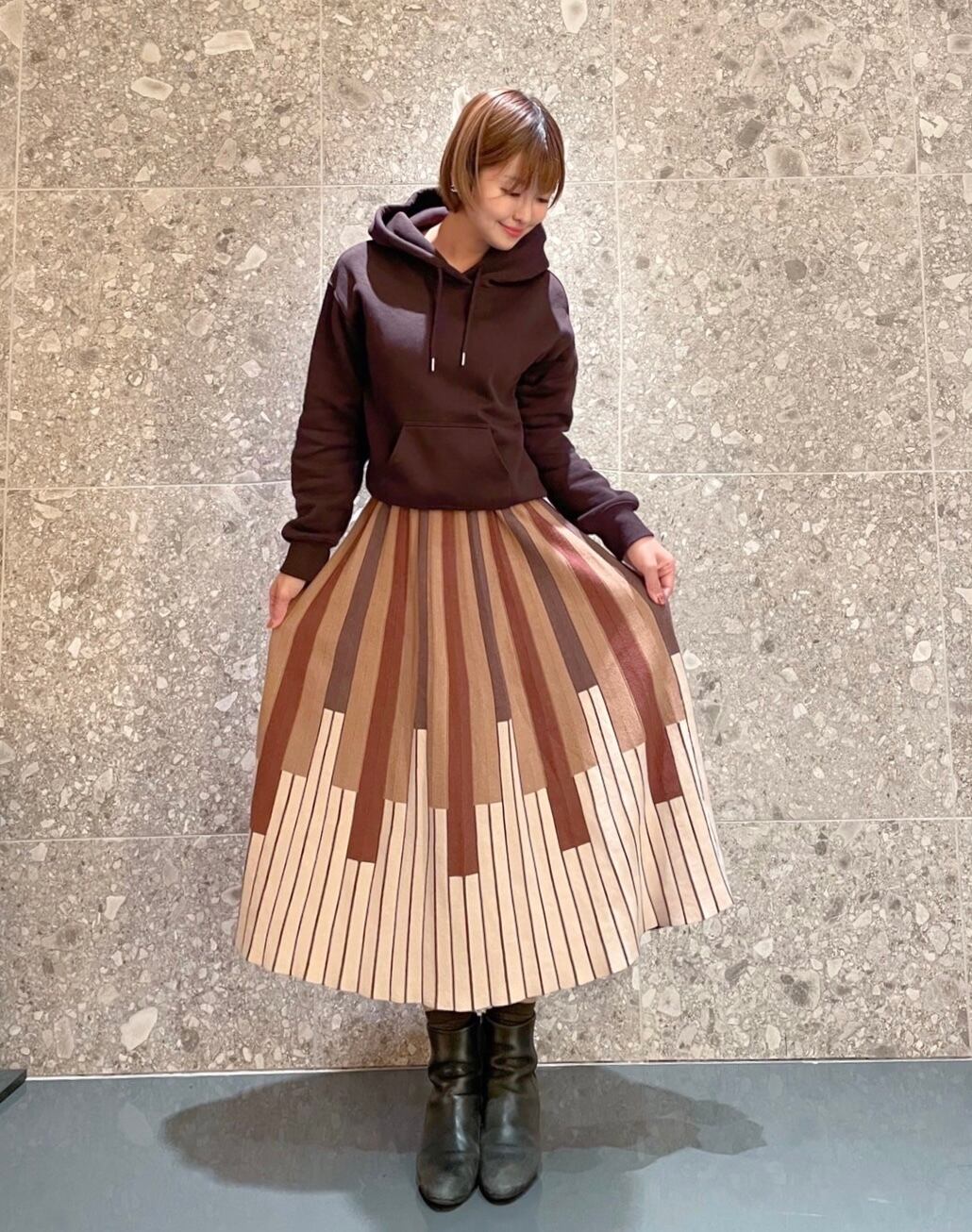 綾瀬羽乃様ご着用 プリーツニットスカート(薄茶)
