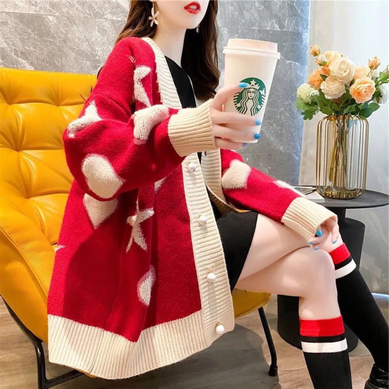 タレント様ご着用 ハートニットカーディガン(レッド)