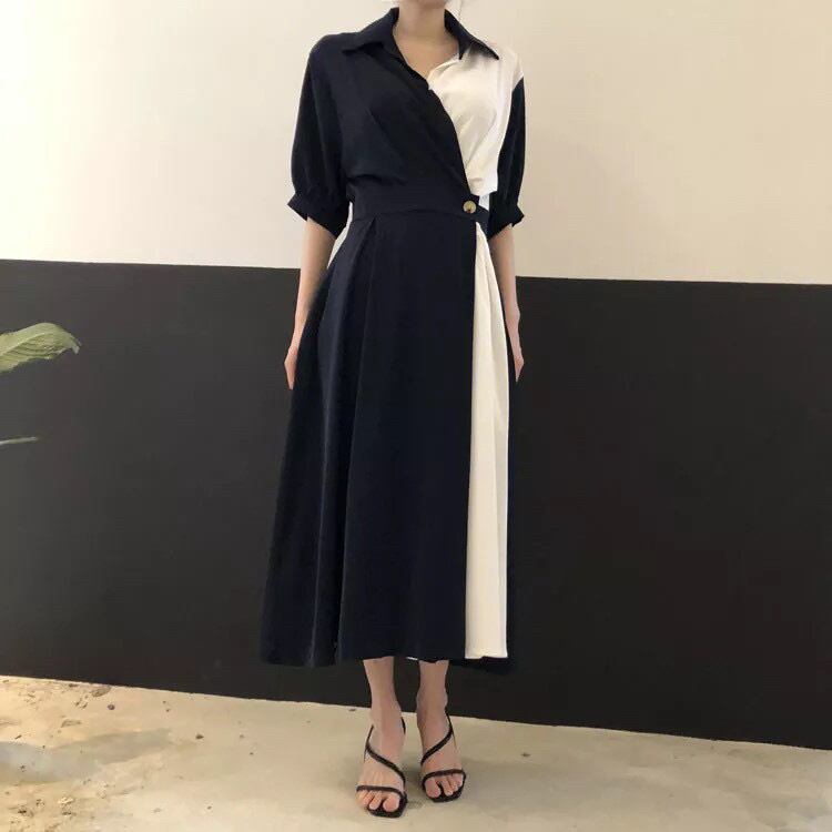 バイカラー 大人気ワンピース(ホワイト×ブラック)