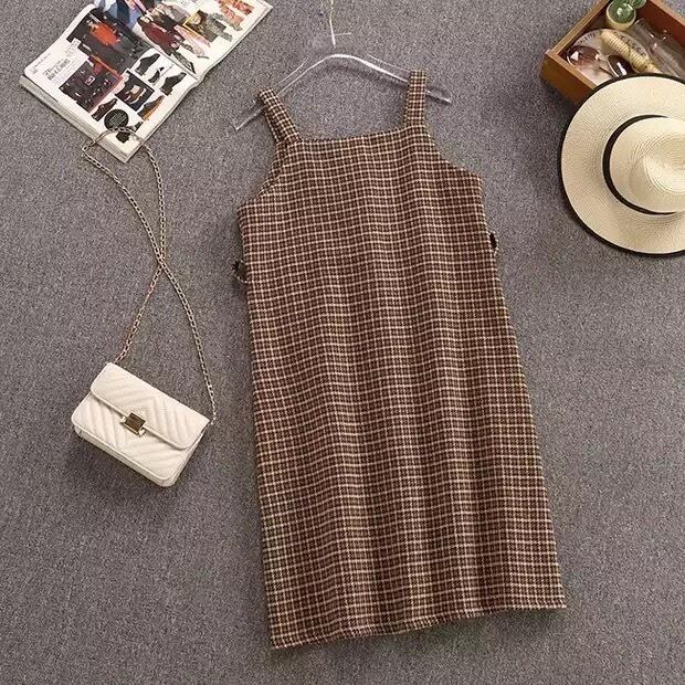 秋冬 3点エレガントスリムワンピース(ブラウン)